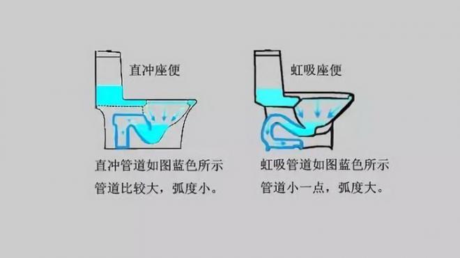 直冲式和虹吸式两种不同的冲水方式,相应配置的排污管也不同。